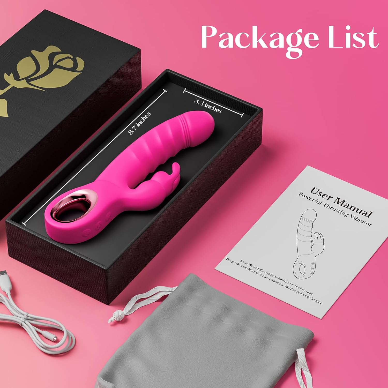 - 7 Thrusting & Rabbit & Vibration Modes: Experience ultimate pleasure with this vibrator wand for this vibradores combining thrusting dildos and clitoral stimulator. This rose sex toy with 7 thrusting & rabbit & vibration modes, it delivers powerful internal and external stimulation. And equipped with advanced motors for stronger, smoother performance than typical g spot dildo.