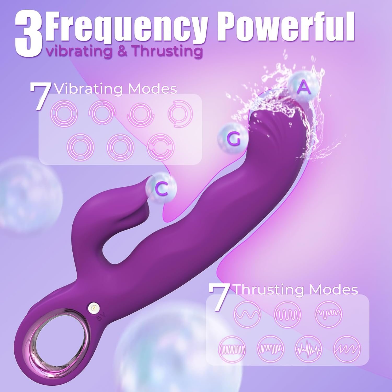 • 3 Frequencies & 7 Thrusting and Vibrating Modes : The female sex toys has 7 strong vibrating and 7 rapid thrusting modes with the bunny massager, for a variety of needs.The womens vibrator features three powerful motors with two independently switched modes,you can switch on and off or switch between the 3 frequencies & 7 thrusting and vibrating modes at any time to choose the one that suits you best.This powerful anal dildo adult sex toys will bring you from gentle to wild, from massage to passionate clitoral orgasms,anal play and G-spot multiple orgasm experiences.